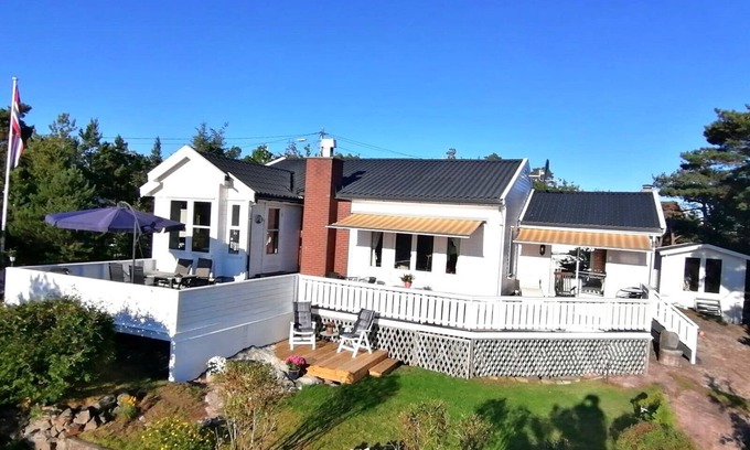 Vacation home with fantastic sea views and private jetty | House in Agder