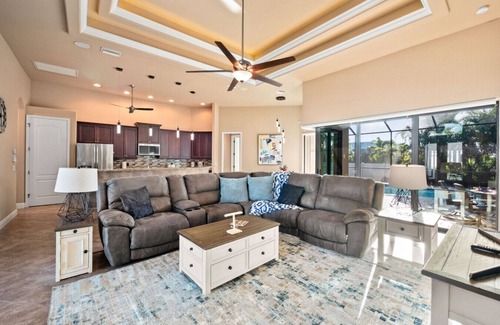 Unwind by the private heated pool or enjoy the open-concept living space, featuring a fully equipped kitchen and stylishly furnished rooms. This home is conveniently located near Cape Coral’s best beaches, dining, and shopping, making it an ideal spot for families or small groups.