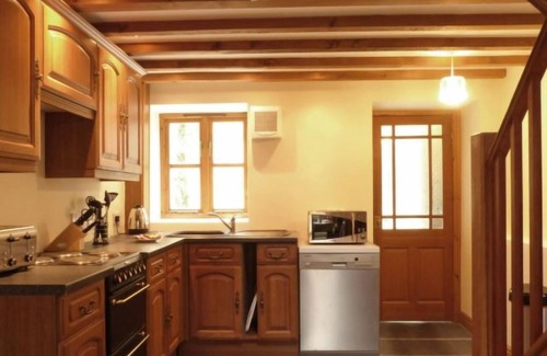 2-room cottage on 2 levels. Spacious and bright, comfortable and tasteful furnishings: open living room with TV, flat screen and DVD. Open kitchen (4 hot plates, oven, dishwasher, microwave, freezer) with dining table. Upper floor: 1 double bedroom with 1 double bed. Shower/WC. Heating. Beautiful view of the countryside. Facilities: washing machine, dryer. Internet (WiFi, free). Please note: non-smoking house.