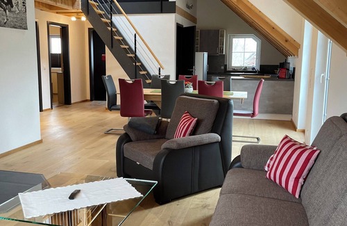 Vacation loft, 100 sqm, 2 bedrooms, 1 open bedroom, balcony and terrace, max. 6 persons | Apartment in Bonndorf