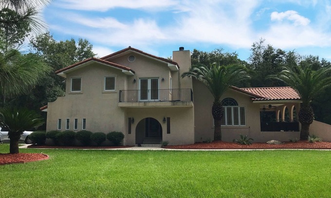 Our home has a large dining room and living room area and beautifully manicured lawns. It is secluded, yet only a 15 minute drive from Saint Simons Island, Jekyll island or Blythe island and a 50 min drive to Jacksonville, Florida or Savannah, Georgia.