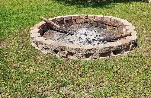 Fridge/freezer, outside grill, microwave, TV (Direct TV). Fire pit. Outdoor seating. Plenty of privacy and room for your boat.