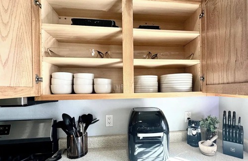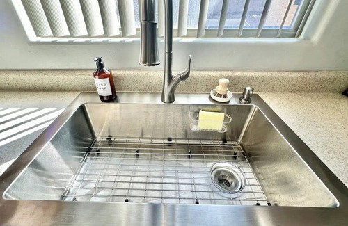 - Stainless steel microwave, stove, and dishwasher (complimentary dishwasher pods under the sink along with dish sponge/cloth and extra trash bags)