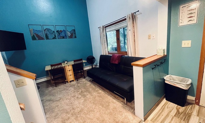 Recently refreshed with new paint and decor, this private mother-in-law suite is attached to the back of our home. The space features a cozy loft with a queen-sized bed, a comfortable futon in the living area, a full bathroom, and a convenient kitchenette for light cooking. Nestled along Robe river and surrounded by breathtaking mountain views, this peaceful getaway offers the perfect blend of comfort and natural beauty.