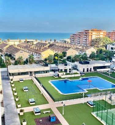 Offering a tennis court, Valencia Beachfront Home 22 provides accommodations in Valencia. Free Wifi is available throughout the property and private parking is available on site. The accommodation offers an elevator and full-day security for guests. Featuring a terrace and sea views, the spacious apartment includes 2 bedrooms, a living room, flat-screen TV, an equipped kitchen, and 1 bathroom with a hot tub and a bidet. Towels and bed linen are featured in the apartment. The accommodation is non-smoking. For guests with children, the apartment features an indoor play area and an outdoor play equipment. Guests can enjoy the outdoor swimming pool and garden at Valencia Beachfront Home 22. Patacona Beach is a 6-minute walk from the accommodation, while Port of Valencia is 2.5 miles from the property. Valencia Airport is 11 miles away.