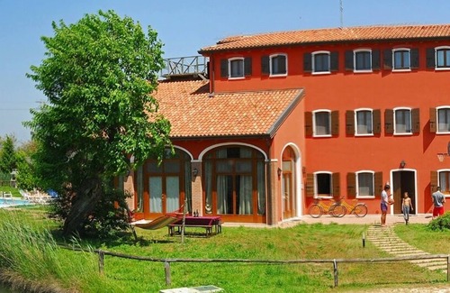 Renovated farmhouse divided in 4 holiday apartments located in the lagoon of Venice, just a short distance from the Sile river. The property has a pier with private boat spaces and all around stretches out the lagoon broken up by small canals. The house is surrounded by a natural lawn with a swimming pool (5x10, 1.50 m deep)(01/05-30/09), garden equipment and barbecue. This accommodation offers a good level of peace and quiet and views of the canals and countryside. Each accommodation has 2 bikes, heating and air conditioning, mosquito nets on all of the windows. Baby bed included in the price but to be requested at the moment of booking (linen not provided). Shaded parking. Comfortable furniture.ACCOMMODATION: (130 m2) Gr. fl.: living/dining room characterised by large arch windows overlooking the garden, kitchen area (microwave, freezer, dishwasher), 1 double bedroom with bathroom with shower, 1 twin bedded room, 1 bathroom with shower (washing machine). 1st fl.: overhead gallery over the living room with double divan bed.LOCATION: 1,5 km beaches, 9 km Jesolo (any kind of shops), 37 km Venezia, 47 km Treviso.