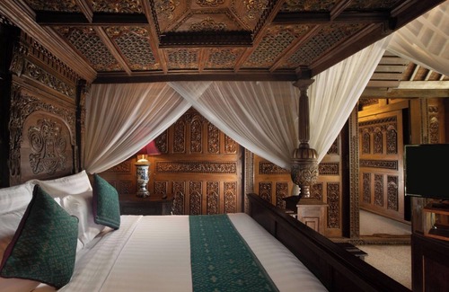 Antique Javanese 194 Sqm Rumah Kudus Villa. A spacious and romantic bedroom equipped with a plush KingKoil bed with fine beddings, goose down pillows and a feather down comforter. A private balcony, private pool and pool deck.