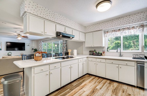 KITCHEN: Fridge, stove, oven, dishwasher, microwave, cooking basics, drip coffee maker (coffee not provided), bar-top seating, dishware/flatware, paper towels/trash bags