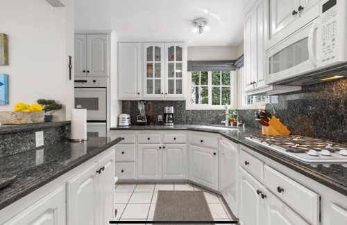 Chic Venice beach bungalow in a quiet residential area --The Silver Triangle--just steps from the canals and a 5 minute walk to Venice beach and the world famous hip Abbott Kinney Blvd. 3 large bedrooms and two full baths, one with a jacuzzi tub. Modern white kitchen with lots of cook space, and dining table for five. Roomy living room with two couches & tasteful mid-century modern vibe. Washer/dryer, dishwasher, 2 coffee makers, fully equipped kitchen with 3 ovens. Quiet oasis of a backyard acts as another living room, with dining area for six, large couch and more seating, gas BBQ and stunning gas fire pit. Make this your home. I do live in my home when not rented, so you will find some personal affects around, but I reserve drawers and create hanging spaces for guests. Beach chairs and umbrellas, gas grill, boogie boards are all for guest usel. Home sharing number is HSR19-001901.
