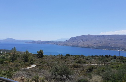 Independent 2 bedroom apartment of 120 square meters with lawn garden, flowers, BBQ in a beautiful area ideal for families, groups, and couples. It has a fully equipped kitchen, bathroom, 2 bedrooms with large double beds, one of which has its own WC with shower. The living and dining area is open plan and has a large corner sofa that converts into a bed. It has a large balcony with fantastic views of Souda bay and the White Mountains. It also has air conditioning, smart TV and Wi Fi.