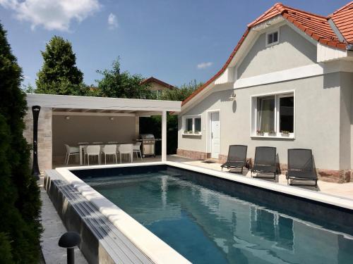 Featuring a garden, Vento Balaton offers accommodations in Alsóörs. This property offers a heated pool, free Wifi, and free private parking. Bebo Aquapark is 27 miles away and Balatonfüred train station is 5.3 miles from the vacation home. With direct access to a patio with garden views, the air-conditioned vacation home consists of 3 bedrooms. Offering a terrace with pool views, this vacation home also features a cable flat-screen TV, a well-equipped kitchen with a dishwasher, an oven, and a microwave, as well as 2 bathrooms with a shower and a hair dryer. The property has an outdoor dining area. Guests can make the most of the warm weather with the property's barbecue facilities. Tihany Abbey is 10 miles from the vacation home, while Bella Stables and Animal Park is 27 miles from the property.