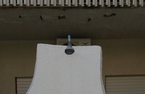 A condominium shower on the ground floor serves as a convenient backing from the beach.