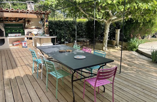 Close to windsurfing, ecotours, and more, this smoke-free villa brings it all within reach. With the property's convenient onsite parking, you'll be ready to make the quick 5-minute drive to Sainte-Victoire Golf or the 4-minute drive to Domaine Terre de Mistral.
