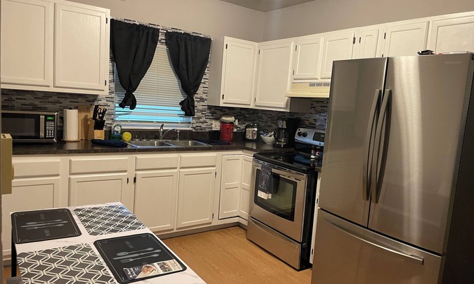 Enjoy a full Kitchen| Keyless Entry| High Speed Wifi| Netflix, Hulu, and ESPN+ On Smart Tv's| Smart projector screen in living Room