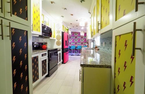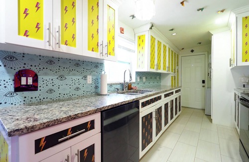 Escape to our enchanting property, where comfort meets creativity in a stunning setting designed for relaxation and inspiration. This unique retreat features three beautifully appointed bedrooms and two modern bathrooms, perfect for families, friends, or traveling professionals seeking a tranquil getaway. Step into our expansive living room, adorned with plush couches and equipped with a 55" high-definition TV, ideal for presentations or cozy movie nights. The full kitchen allows for seamless meal preparation and entertaining, whether you're hosting a dinner party or enjoying a quiet breakfast. Venture outdoors to discover our captivating garden, featuring a 10' glass geodesic dome surrounded by lush bamboo and an edible food forest. This serene space is perfect for meditation, filming, or simply enjoying the beauty of nature. Capture unforgettable moments with a variety of stunning indoor and outdoor photo opportunities, including vibrant murals and whimsical decor that add a touch of magic to every photograph. Whether you're here for a getaway, a creative retreat, or a productive business trip, our property offers the perfect blend of comfort and inspiration. Enjoy the flexibility of outside catering, and rest assured that our commitment to cleanliness and disinfection ensures a safe and welcoming environment for all guests. Come experience the charm and tranquility of our magical location, where every detail is designed to make your stay unforgettable!