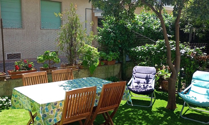 Two-room apartment, located in a villa with private garden, ground floor, 4 beds. Consumption included, consisting of a double bedroom with a double bed and a single bed, in the kitchen another single bed in a mobile page that can be closed during the day. Equipped kitchen with 4-burner gas hob, fridge, washing machine, microwave, TV, iron, hairdryer. Bathroom with bathtub and shower. Winter heating with natural gas boiler, radiators, mosquito nets and window grilles. Garden with table and chairs, deckchairs, gas barbecue available for guests. Public parking lots near the house both for a fee and free. - Free beach and beach facilities a few steps out of the gate. Also shops, bank, bar, pizzeria