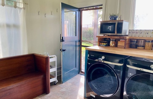 GeneralElectric kettle, Cable TV service, Dishwasher, Spices, Designer toiletries, Stovetop, Bathtub only, Video-game console, Balcony or patio, Kitchen, No rollaway/extra beds, Number of bedrooms - 3, Iron/ironing board, Television, Bed count minimum 3, Pet-friendly room, Toaster, Bed sheets provided, Hair dryer, Free WiFi, Coffee/tea maker, DVD player, Children's books, Microwave, Dryer, Laptop-friendly workspace, Towels provided, Air conditioning, Number of bathrooms - 2, Cookware, dishware, and utensils, Washing machine, Private bathroom, Heating, No cribs (infant beds), Oven, Refrigerator, Bed count maximum 3 |