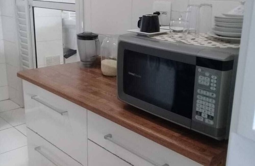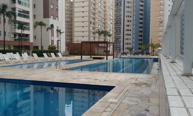 The property is new in Santos that is safe, high floor, sea view, large swimming pools, sauna, playroom, outdoor park, barbecue inside the apartment, climbing, basketball court, futsal court, gym, small grove to do air conditioning, stove, refrigerator, gas shower, concierge, television, beach chairs, umbrella, dining table for 8 people, sofas and holiday environment