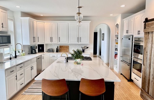 Our modern farmhouse mountain home has the most beautiful view of Missoula and yet so close to downtown and the university. There is so much space inside (5000 square feet) with 5 bedrooms and 4 bathrooms to make your stay comfortable. The formal living room, separate dining room, and huge great room including a family room, eating area, and breakfast nook along with a huge kitchen with top of the line appliances will help make you all feel at home away from home. Outside our home you will find plenty to do without even driving with a hiking trail outside the front door that leads to the Sousa Trail and the Barnmeyer Loop with an overlook that will take your breath away along with connections to the new Dean Stone Mountain trail (over 12 miles of hiking trails). It has the best of both worlds- Montana mountain life, yet close to everything downtown Missoula has to offer!