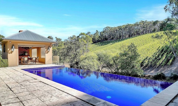 Discover this exquisite estate nestled in the Adelaide Hills, where timeless elegance meets natural beauty. This home captures country elegance with heritage stonework, vintage character, and sweeping treetop views. Wander through sculpted topiary gardens featured in Country Style magazine, take a dip in the negative-edge pool, and savour alfresco feasts in the pool house. Spot visiting kangaroos and white deer, or head out to explore nearby wineries and the scenic trails of Mount Lofty Summit.