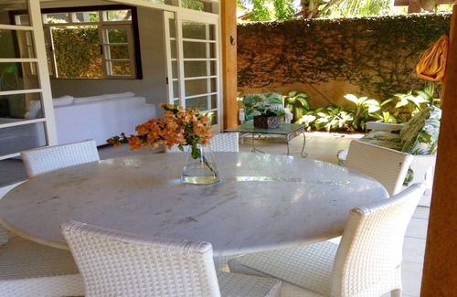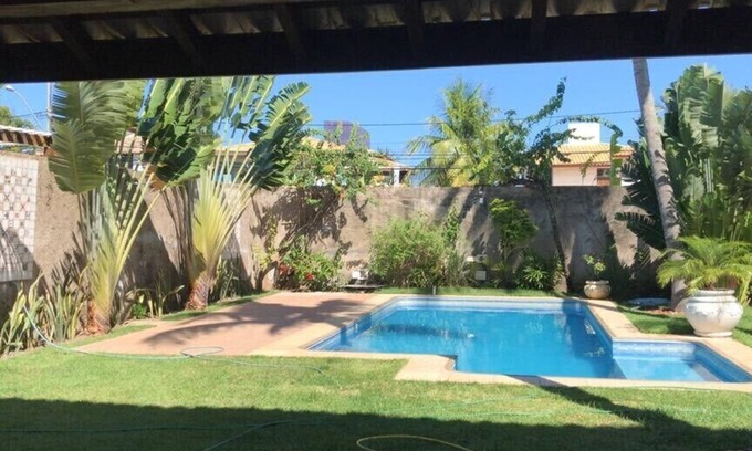 Large, furnished house, 250 m from the beach, well ventilated, east, on the upper floor: 4 bedrooms, 1 TV room, 3 toilets, on the lower floor: large rooms, meal TV, and 1 wash room, large pantry; private pool and large garden with coconut trees, covered garage for 2 cars and two more cars discovered, capacity to accommodate up to 13 people, in Vilas do Atläntico, a neighborhood that combines tranquility and the bucolic nature of the coast and with all the infrastructure (restaurants, bars, pizzerias, delicatesens, creperies and small malls).