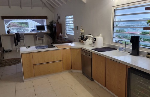"Belle Colombe" is the rather original name given to this villa built on the land of a former sugar refinery. This charming rental that can accommodate up to 6 people welcomes you in a calm and relaxing environment for an exceptional stay. Located less than 1 km from the center of Marigot and Galisbay beach, which is very popular with Saint-Martin residents on Sundays, treat yourself to the much-desired calm to enjoy the greenery and the delights of its swimming pool and jacuzzi.