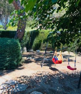 Food & DrinkTea/Coffee makerBathroomFree toiletries, Towels, Toilet paper, Private bathroom, Bidet, Shampoo, Bathtub, Toilet, HairdryerMedia & TechnologyTV, Flat-screen TVKitchenDining table, Coffee machine, Kitchenware, Electric kettle, Stovetop, Refrigerator, Wine glasses, Kitchen, Cleaning products, Oven, DishwasherLiving AreaSitting area, Desk, Sofa, Dining areaGeneralTrash cans, Heating, Fire extinguisher, Hardwood or parquet floors, Fan, Private entranceOutdoorsOutdoor dining area, Patio, Private pool, Barbecue, Outdoor furniture, TerraceBedroomWardrobe or closet, Childrens' cribs, LinensViewGarden view, Pool viewAccessibilityEntire unit located on ground floor, Entire unit wheelchair accessibleBuilding CharacteristicsDetachedRoom AmenitiesClothes rack, Socket near the bedPool and SpaPool towels |