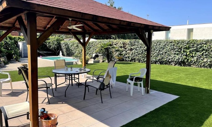 This 3 Bedrooms Villa is suitable for tourists and travelers. It has several amenities that would guarantee your comfort. These amenities include: Pool, Balcony/Terrace, Barbecue/Outdoor Cooking, and several others. This is a 3 star rated property and has over 11 reviews with the average score of 7.6 . Coming to Odena and needing a place to stay? Be it for work or for leisure, consider staying at this Villa for your next visit, you will surely love it.