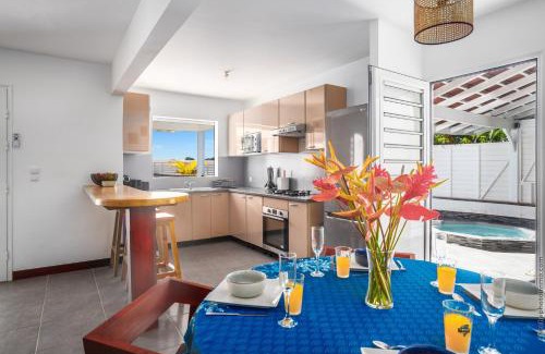 This property offers access to a terrace, free private parking, and free Wifi. The vacation home has a year-round outdoor pool and a hot tub. The air-conditioned vacation home consists of 2 bedrooms, a living room, a fully equipped kitchen with a dishwasher and a coffee machine, and 2 bathrooms with a walk-in shower and a hot tub. Towels and bed linen are offered in the vacation home. For added privacy, the accommodation features a private entrance. Martinique Aime Cesaire International Airport is 10 miles from the property.