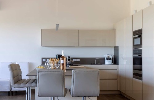 The pool area overlooks the sea, and a well-equipped outdoor kitchen invites you to enjoy gatherings in the open air. You also have direct access to the sea and nearby boat mooring.