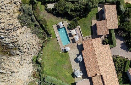 Surrounded by Mediterranean vegetation, the villa includes a shelter for four cars at the entrance. A caretaker resides on-site year-round to assist with your needs.