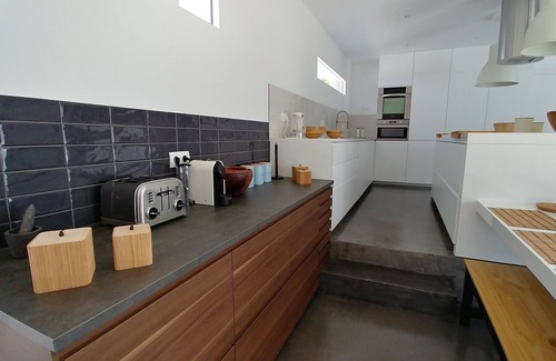 Very large fully equipped kitchen (2 fridges / freezers), large living room equipped with TV with channels all nationalities and Netflix, overhead projector.