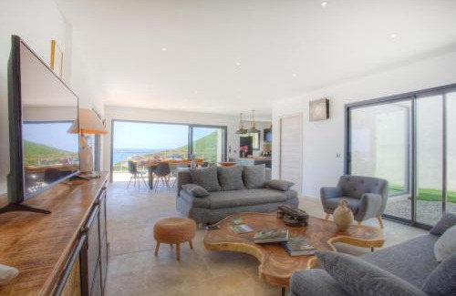 Providing a garden, Villa A Luna provides accommodations in Pietracorbara. With mountain views, this accommodation offers a patio and a swimming pool. Outdoor seating is also available at the villa. Offering a terrace and sea views, the villa includes 4 bedrooms, a living room, satellite flat-screen TV, an equipped kitchen, and 4 bathrooms with a shower. Towels and bed linen are featured in the villa. For added privacy, the accommodation has a private entrance and soundproofing. Activities such as fishing, canoeing, and hiking can be enjoyed in the area, and guests can relax along the beachfront. Pietracorbara Beach is a 13-minute walk from Villa A Luna, while Marine de Sisco Beach is 1.8 miles away. The nearest airport is Bastia - Poretta Airport, 24 miles from the accommodation.