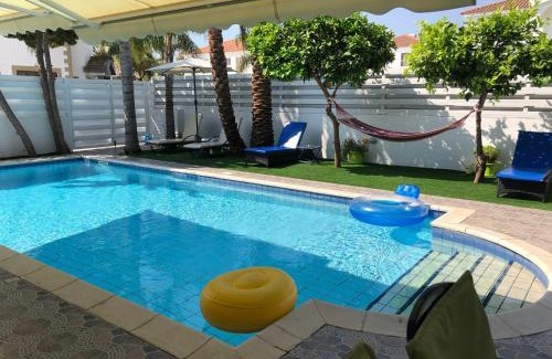 Villa Andy-350 m from the beach is a recently renovated villa in Larnaca, near Voroklini Beach. This property offers access to a balcony, a pool table, free private parking, and free Wifi. The accommodation offers a shared kitchen and bicycle parking for guests. Offering a terrace and sea views, the spacious villa includes 4 bedrooms, a living room, satellite flat-screen TV, an equipped kitchen, and 3 bathrooms with a walk-in shower and a bath. Guests can take in the views of the mountain from the patio, which also has outdoor furniture. For added privacy, the accommodation has a private entrance and soundproofing. For guests with children, the villa provides an indoor play area. Guests can swim in the outdoor swimming pool, go skiing or hiking, relax in the garden, and use the barbecue facilities. Europe Square is 3.8 miles from Villa Andy-350 m from the beach, while Larnaca Marina is 3.9 miles away. Larnaca International Airport is 6.2 miles from the property.