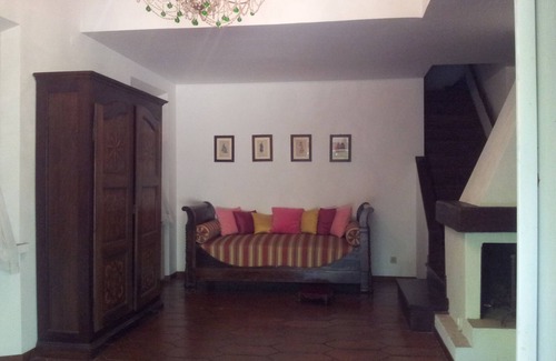 (Text automatically translated) Armida Villa, semi-detached villa tastefully furnished with quality furniture consists of two floors with a total area of ??100 meters on the ground floor 1 double bedroom, 1 single bedroom, large lounge with dining area and fireplace, kitchen and bathroom on the first floor 1 double bedroom with additional room with sofa bed 1 place and a reading corner, bathroom and balcony. The villa is surrounded by a covered porch of 40 meters and a garden of 400 meters. Search us for discount.