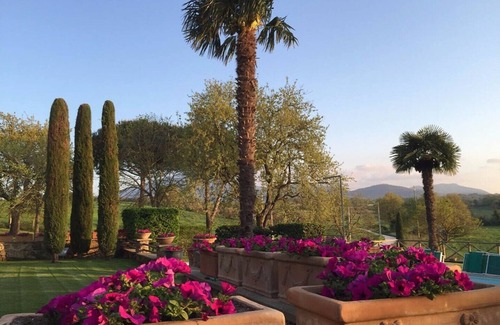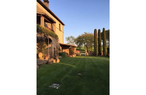 Prestigious and ancient country house dating back to 1617, on three floors, completely restored in 2006 and used as a comfortable holiday home in the green hills in the center of the Roman Tuscia near a small Etruscan necropolis. Located on the small top of a hill (360 above sea level), it is surrounded by 5,000 m2 of lawn as well as an orchard and an olive grove for a total of 10,000 m2 all fenced. Particularly interesting, as well as for its excellent tranquility, for the geographical location that allows you to easily visit both Umbria and Lazio. Swimming pool (6x12 - max 2.10 meters) equipped with deckchairs, tables and umbrellas and children's pool (4x4 - 1.20). Laundry (washing machine). Near the pools you can visit an Etruscan tomb. Upon request and to be paid on the spot, there are 5 additional folding sofa beds available (Euro 100 bed / w). Parking near the villa. Access to the property through an automatic gate. On request possibility of organizing lunches or dinners, cooking courses and taking part in guided excursions (archaeological, lakeside, thermal, cultural, gastronomic itinerary); possibility of buying the company's products (wine, oil). On request and at an additional cost, it is possible to take advantage of wellness treatments on site.