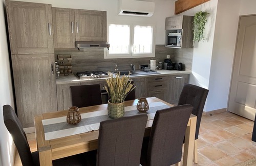 Private house of 80m2, fully renovated, fully equipped, ideally located at the foot of the Sainte Victoire with views of Mount Aurelien, classified site, in the heart of the vineyards of Provence and only 20 minutes from Aix en Provence.