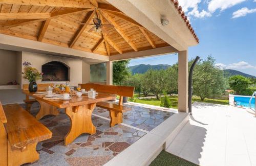 VILLA BEYBE with Jacuzzi, large private pool 50m2, BBQ, free WIFI, 3 bedrooms is located in Gata, just 16 miles from Salona Archeological Park and 17 miles from Diocletian's Palace. This property offers access to a balcony, table tennis, free private parking, and free Wifi. The villa has a children's playground and a hot tub. Offering a terrace and mountain views, the villa includes 4 bedrooms, a living room, satellite TV, an equipped kitchen, and 3 bathrooms with a hot tub and a bath. Towels and bed linen are featured in the villa. There's also a seating area and a fireplace. You can play darts and mini-golf at this 4-star villa, and the area is popular for snorkeling and diving. Guests can swim in the outdoor swimming pool, go cycling or fishing, or relax in the garden. Mladezi Park Stadium is 17 miles from the villa, while Cathedral of St. Domnius is 17 miles away. Split Airport is 25 miles from the property.