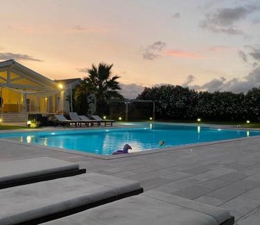 Food & DrinkTea/Coffee maker, Bottle of waterBathroomPrivate bathroom, Shower, Bathtub or shower, Toilet paper, Hairdryer, Bidet, Toilet, Towels/Sheets (extra fee), TowelsMedia & TechnologyFlat-screen TV, TVGeneralPrivate entrance, Tile/Marble floor, Trash cans, Suit press, Key access, Ironing facilities, Iron, Air conditioning, Heating, FanKitchenElectric kettle, Dishwasher, Stovetop, Coffee machine, Oven, Kitchen, Kitchenette, Microwave, Toaster, Refrigerator, Washing machine, High chair, Dining table, Wine glasses, KitchenwareOutdoorsPrivate pool, Terrace, Barbecue, Outdoor dining area, Balcony, Patio, Outdoor furnitureLiving AreaSitting area, Sofa, Dining areaBedroomWalk-in closet, Linens, Wardrobe or closet, Childrens' cribsViewMountain view, Pool view, Garden view, Inner courtyard view, ViewAccessibilityEntire unit located on ground floorBuilding CharacteristicsDetachedRoom AmenitiesSocket near the bed, Drying rack for clothing, Clothes rackPool and SpaInfinity Pool, Pool towels, Shallow end, Pool with a view |
