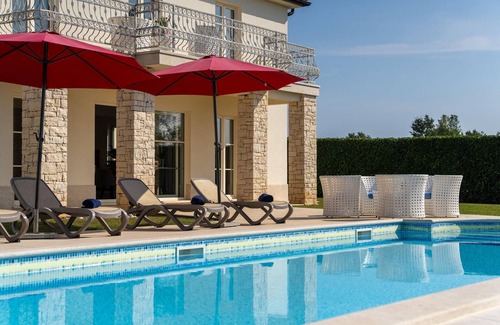 Villa Bincila Labinci is a beautiful 350m2 property consisting of six bedrooms and five bathrooms, making it the perfect accommodation for up to 12 people. The villa has a bright and stylishly decorated interior and is equipped with everything you could possibly need on your vacation. The villa consists of a large living room connected to the dining area and the fully equipped kitchen. From the kitchen you have direct access to the garden, where you are sure to spend most of your time - whether in the beautiful private pool, which is illuminated at night, on the sun loungers, in the lounge area, or in the shade of the covered terrace, where you can enjoy meals from the barbecue. All six bedrooms have a double bed. The villa is air-conditioned, has wifi and offers 4 private parking spaces and a private garage.Labinci is a small village just a short drive from Porec. Porec is the tourist center of Istria, known for its beautiful beaches and rich cultural heritage. In terms of cultural heritage, Porec is best known for the Euphrasian Basilica, one of the most beautiful architectural works of art in the world. There are numerous beach clubs, cafés and nightclubs in Porec. You can also choose from several restaurants where you can sample delicious Istrian cuisine. Near Porec you will find one of the best water parks in Istria - Aqualandia, where a day of fun for the whole family is guaranteed. If you want to explore central Istria, you must visit one of the charming hilltop towns such as Groznjan or Motovun and enjoy the view of the breathtaking surroundings.