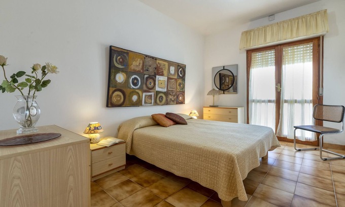 The villa 'Brandinu' is located in Sassari and impresses guests with its view of the mountains. The 100 m² property consists of a living room with a sofa bed for 2 people, a well-equipped kitchen, 2 bedrooms, and 2 bathrooms and can therefore accommodate 6 people. Additional amenities include high-speed Wi-Fi (suitable for video calls), heating as well as cable TV.