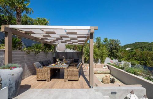Offering a garden and a shared lounge, Villa Buddha Bay in Korčula is close to Zrnovo Beach and La Banya Beach. This property offers a rooftop pool, free Wifi, and free private parking. The villa has a picnic area and a hot tub. Opening onto a balcony with mountain views, the spacious air-conditioned villa consists of 4 bedrooms. Providing a terrace with sea views, this villa also offers a satellite flat-screen TV, a well-equipped kitchen with a dishwasher, an oven, and a microwave, as well as 4 bathrooms with a hot tub and bathrobes. The property has an outdoor dining area. A mini-market is available at the villa. The area is popular for hiking, and car rental and free use of bicycles are available at the villa. Vrbovica Beach is a 7-minute walk from Villa Buddha Bay, while St. Blaise Fortress is 2.6 miles away.
