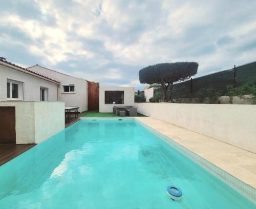 Providing a garden, villa calme au milieu des vignes avec piscine 2 chambres provides accommodations in Péret. This property offers a private pool, free Wifi, and free private parking. Outdoor seating is also available at the villa. Featuring pool and garden views, this villa features 1 bedroom and opens to a patio. Featuring a terrace with mountain views, this villa also comes with a cable flat-screen TV, a well-equipped kitchen with a dishwasher, an oven, and a toaster, as well as 1 bathroom with a bath. This villa is non-smoking and soundproof. La Mosson Stadium is 31 miles from villa calme au milieu des vignes avec piscine 2 chambres. Beziers Cap d'Agde Airport is 28 miles from the property.