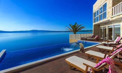 A few steps from Posedarje Beach in Kapetan stan, Villa CaMa provides accommodations with access to beauty services and fitness room. This beachfront property offers access to a balcony, table tennis, free private parking, and free Wifi. Guests can use the spa and wellness center with a sauna, hot tub, and wellness packages, as well as a private beach area. Providing a terrace and sea views, the spacious villa includes 4 bedrooms, 2 living rooms, satellite flat-screen TV, an equipped kitchen, and 5 bathrooms with a walk-in shower and a hot tub. A private entrance leads guests into the villa, where they can enjoy some wine or champagne and fruit. There's also a seating area and a fireplace. Guests can eat at the on-site family-friendly restaurant, which is open for dinner, lunch, and brunch. You can play darts at this 5-star villa, and the area is popular for windsurfing and fishing. Guests can swim in the infinity pool, go canoeing, relax in the garden, and use the barbecue facilities. Paklenica National Park is 11 miles from the villa, while Museum of Illusions Zadar is 17 miles from the property. Zadar Airport is 16 miles away, and the property offers a paid airport shuttle service.