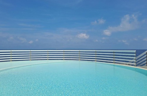 BathroomBidet, Bathtub, Towels, Toilet, Private bathroomMedia & TechnologyTV, Flat-screen TVGeneralTile/Marble floor, Fan, Private entrance, Air conditioning, Key card access, Heating, Trash cansKitchenOven, Coffee machine, Washing machine, Kitchen, Kitchenette, Microwave, Refrigerator, Dining tableOutdoorsBalcony, Private pool, Terrace, Outdoor furniture, Outdoor dining areaLiving AreaSitting area, Sofa, Dining areaViewView, Sea view, Garden viewBedroomChildrens' cribs, Linens, Wardrobe or closetAccessibilityUpper floors accessible by stairs onlyBuilding CharacteristicsDetachedRoom AmenitiesClothes rack |