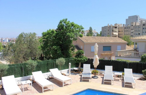The villa Casa Filipinas is located in Palma and is perfect for an unforgettable holiday with your loved ones. The 3-storey property consists of a living room, a well-equipped kitchen, 5 bedrooms and 4 bathrooms as well as an additional toilet and can therefore accommodate 10 people. Additional amenities include high-speed Wi-Fi (suitable for video calls) with a dedicated workspace for home office, a TV, air conditioning, a fan, a washing machine, a dryer, beach/pool towels as well as children's books and toys. A baby cot and a high chair are also available. This rental property features a private outdoor area with a pool, garden, open terrace, covered terrace, balcony, barbecue, and outdoor shower.