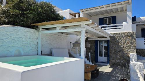 Featuring a garden, Villa Chronos with private pool features accommodations in Mikonos. A hot tub and a car rental service are available for guests. There's a sun terrace and guests can use free Wifi and free private parking. The air-conditioned villa is composed of 2 separate bedrooms, a living room, a fully equipped kitchen, and 2 bathrooms. A flat-screen TV is offered. The accommodation is non-smoking. Panormos Beach is a 7-minute walk from the villa, while Mykonos New Port is 4 miles away. Mykonos Airport is 2.5 miles from the property, and the property offers a paid airport shuttle service.