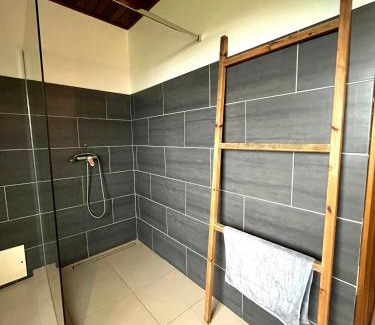 Food & DrinkTea/Coffee maker, Bottle of waterBathroomBathrobe, Free toiletries, Private bathroom, Bathtub or shower, Shampoo, Toilet, Towels, Shower, Hairdryer, Walk-in shower, Body soapGeneralHardwood or parquet floors, Key access, Air conditioning, Soundproof, Smoke Alarm, Trash cansKitchenKitchenette, High chair, Microwave, Cleaning products, Refrigerator, Dining table, Kitchenware, StovetopLiving AreaDining areaBedroomWardrobe or closet, Linens, Childrens' cribsAccessibilityEntire unit located on ground floorBuilding CharacteristicsDetachedRoom AmenitiesSocket near the bed, Adapter, Clothes rack, Hypoallergenic pillowEntertainment & Family ServicesBoard games/puzzles, Child safety socket covers |