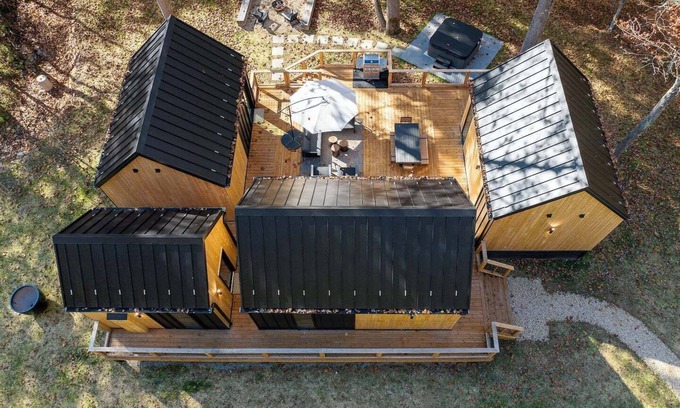 Introducing Villa Creek at Hugga In the Hills. Our pet free Scandinavian inspired DECONSTRUCTED villa; four unique buildings nestled within the heart of the Hocking Hills. Sprawling over 42 acres of private landscape, this is more than a getaway—it's an experience of outdoor living. Just a leisurely 3-4 miles from Cedar Falls and the storied Old Man's Cave, you're perfectly positioned to explore the natural wonders that define the Hocking Hills.