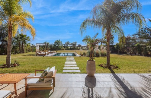 Step outside to discover the villa’s enchanting garden — an oasis of serenity spanning 2200 sqm. Lush, manicured lawns surround the shimmering heated pool, where sun loungers invite lazy afternoons beneath the Moroccan sun. Dine alfresco on the covered terrace, savouring the enchanting blend of luxury and nature. With its unparalleled setting and captivating charm, Villa Dar Saliha is more than just a holiday home — it’s an unforgettable escape into pure bliss.